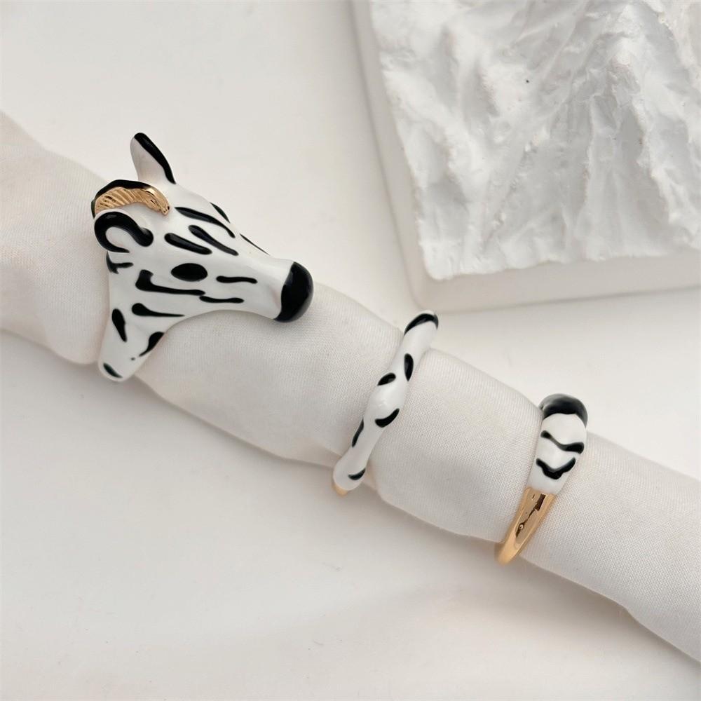 Pony Horse Cartoon Glaze Ring Vintage Opening Finger Ring Aesthetic Animal Horse Ring Set Girls