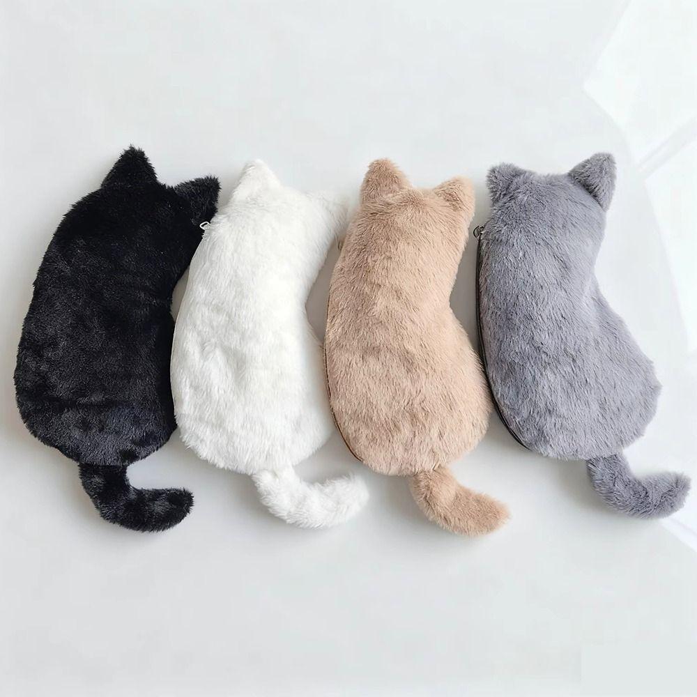 Soft Fluffy Pencil Case Kawaii Animal Stationery Bag Portable Cat Plush Pencil Bag Office Supplies