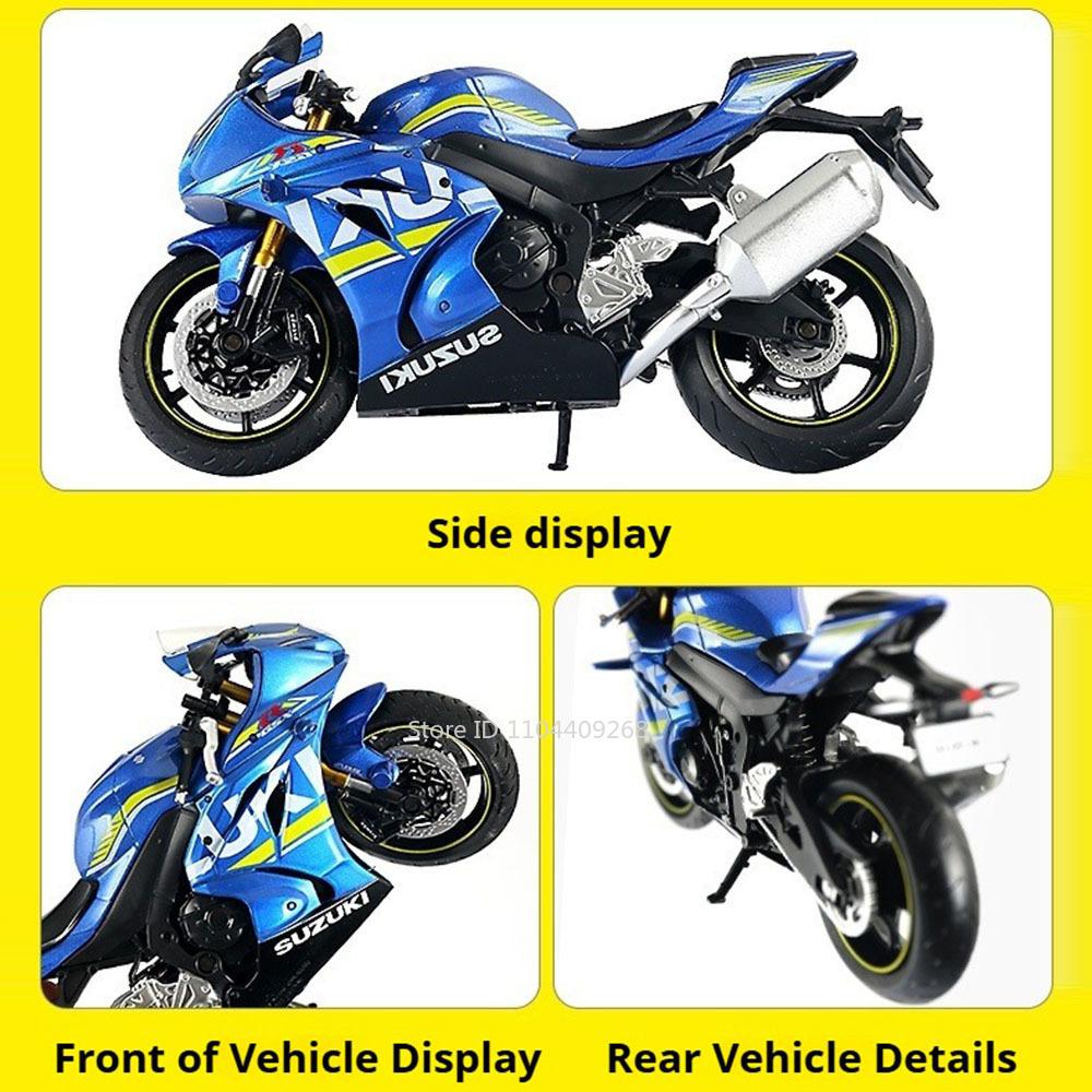 1:12 SUZUKI GSX-R1000 BMW R1250GS Motorcycle Model Toy Car Linkage Steering Retractable Tripod Alloy Diecast Models Kids Toys