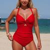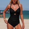 Traje de baño de una pieza para mujer, verano, con escote retorcido y corte, push up, espalda cruzada, fruncido para control de abdomen, elegante para la playa, adelgazante