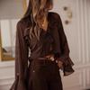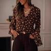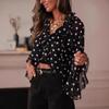 Nuevo Top de Gasa con Lunares, Mangas Largas y Volantes para Mujer, Estilo Europeo y Americano