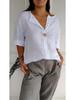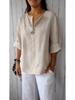 Embrace a blend of comfort and style with this Summer V-neck Women's T-shirt, crafted from a soft combination of cotton and linen. The solid pattern perfectly complements its loose fit, ensuring a breathable and relaxed wear for warm days. Designed with a flattering V-neckline, this T-shirt offers a versatile look that pairs effortlessly with various casual outfits. Ideal for both European and American summer vibes, it's a wardrobe essential for those seeking elegance and ease.