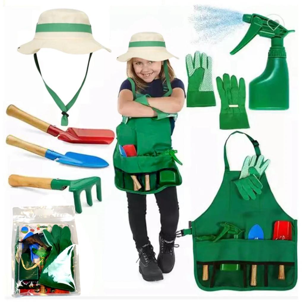Set de 7 piezas Delantal de Jardín para Niños Set de Herramientas Guantes de Jardín Cultivar Flores Jugar Cosplay Juguetes de Ciencia Fiesta de Niñas Disfraces de Cosplay