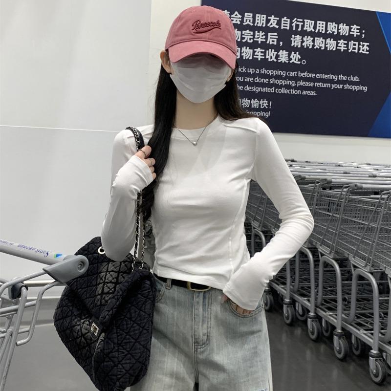 A White Bottomed Shirt, A Female Fishbone Front Shoulder Long-sleeved Shirt, A Slim-fitting and Thin Inner Top in Spring, Autumn and Winter.