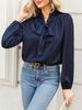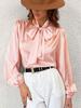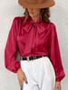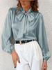 Women's Long Sleeve Satin High Neck Bow Top