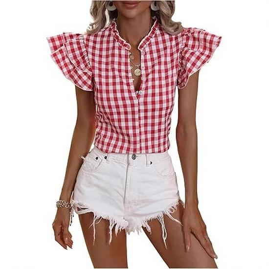 2026 Spring/Summer European-American Plaid Ruffle Shirt for Women