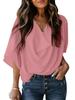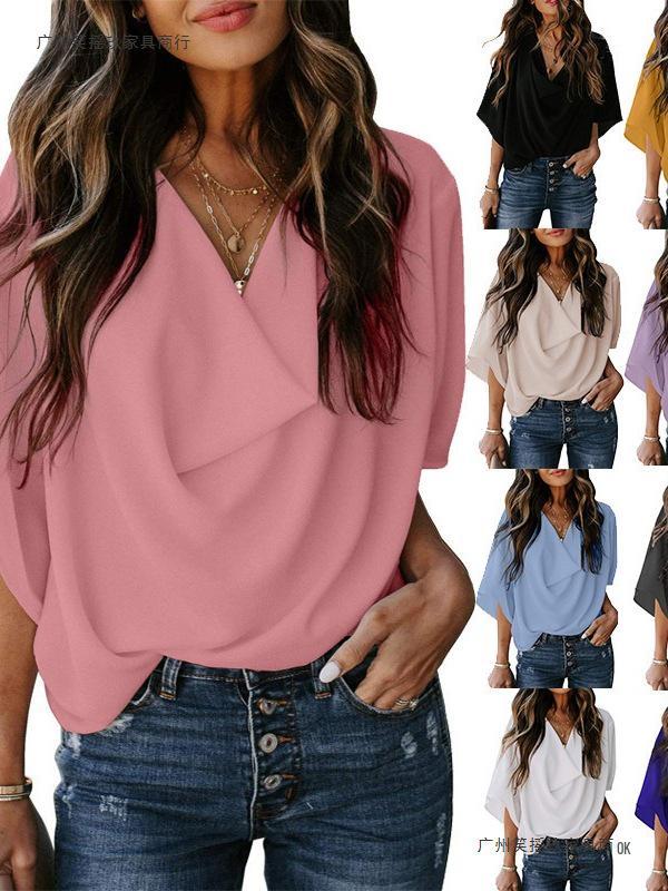 Introducing a stylish and versatile addition to your wardrobe, this chiffon top embodies the essence of European and American fashion. Crafted from soft polyester, it features a solid pattern and a flattering loose fit that drapes gently for a relaxed silhouette. The 1/2 sleeve length and classic v-neckline add a touch of elegance while ensuring comfort and style. Perfect for a casual day out or a laid-back evening, this top seamlessly combines comfort with chic sophistication.