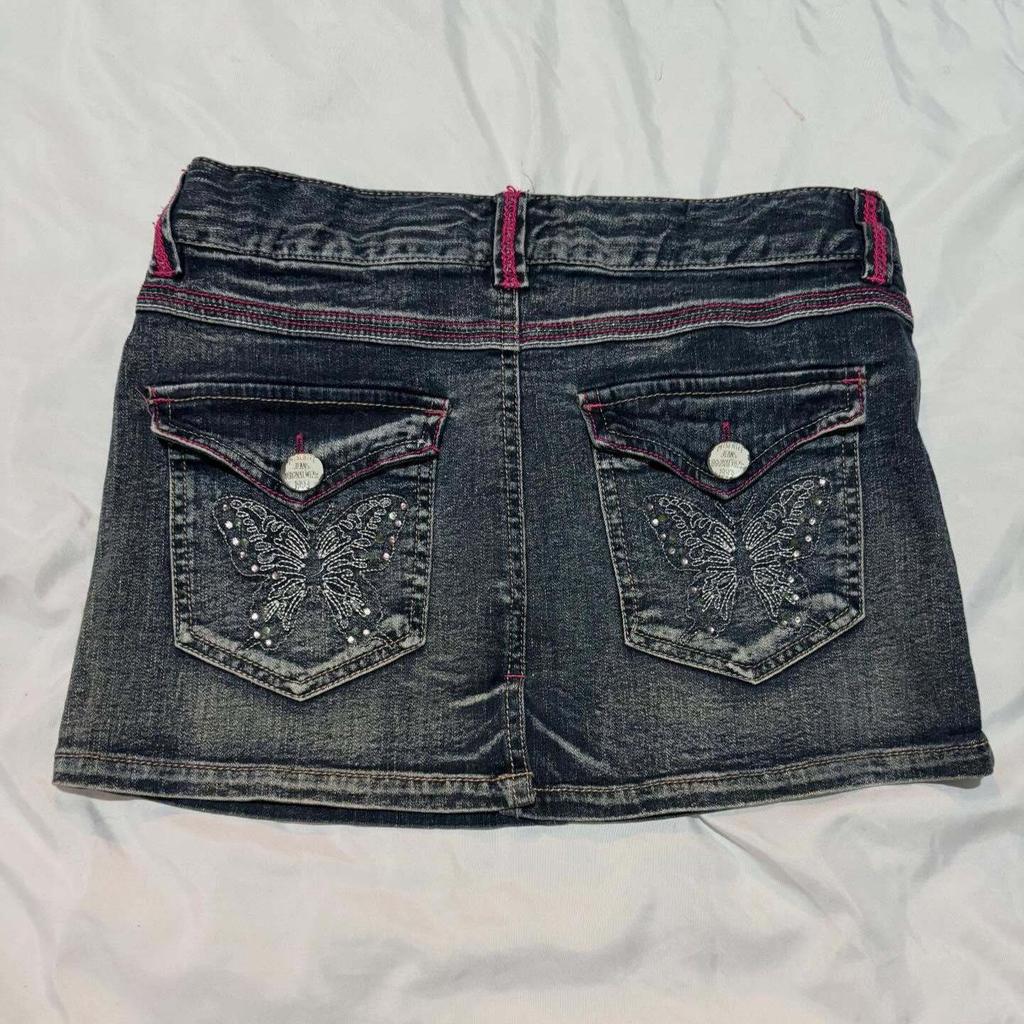 Minifalda Vaquera Retro Y2K Bordada con Mariposas - Lavada, Ajustada a la Cadera, Estilo Urbano Chica Picante