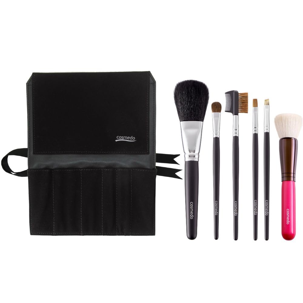 Takumi no Makeup Brush Kumano Brush Makeup Brush Starter Set Special Makeup Brushes with Brush Cosme-do Set, (6 Case), Black, S606-K