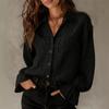 2026 Women's Solid Color Lapel Lace-Trim Long Sleeve Versatile Shirt