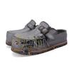 Johnature Hand Drawn Genuine Leather Thick Soled Shoes Fashion Round Toe Height Increasing Slippers