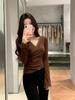 Popular Elements: Lace, V-neck, Solid Color, Wild, Slim Fit, Splicing, Pleats