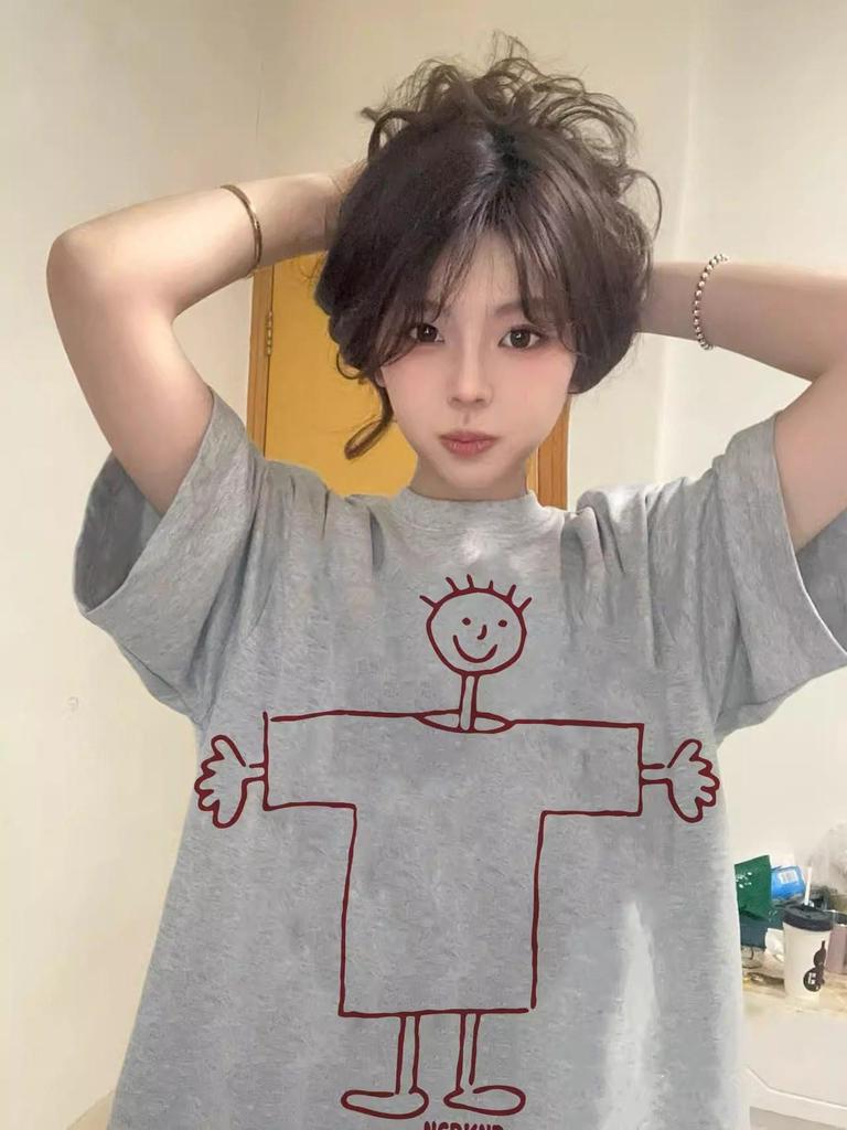 Experience timeless style and comfort with this loose fit short sleeve T-shirt, designed for all genders and available in plus sizes. Crafted from soft, high-quality cotton, this tee features a classic round neckline and short sleeves for a relaxed fit. The eye-catching print decoration adds a touch of retro flair, making it a versatile addition to your wardrobe for any casual occasion.