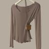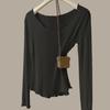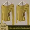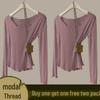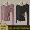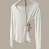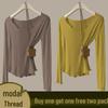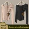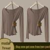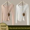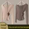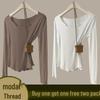 Women's Autumn Modal Ribbed Top: Round Neck, Long Sleeve, Rolled Hem, Base Layer T-Shirt