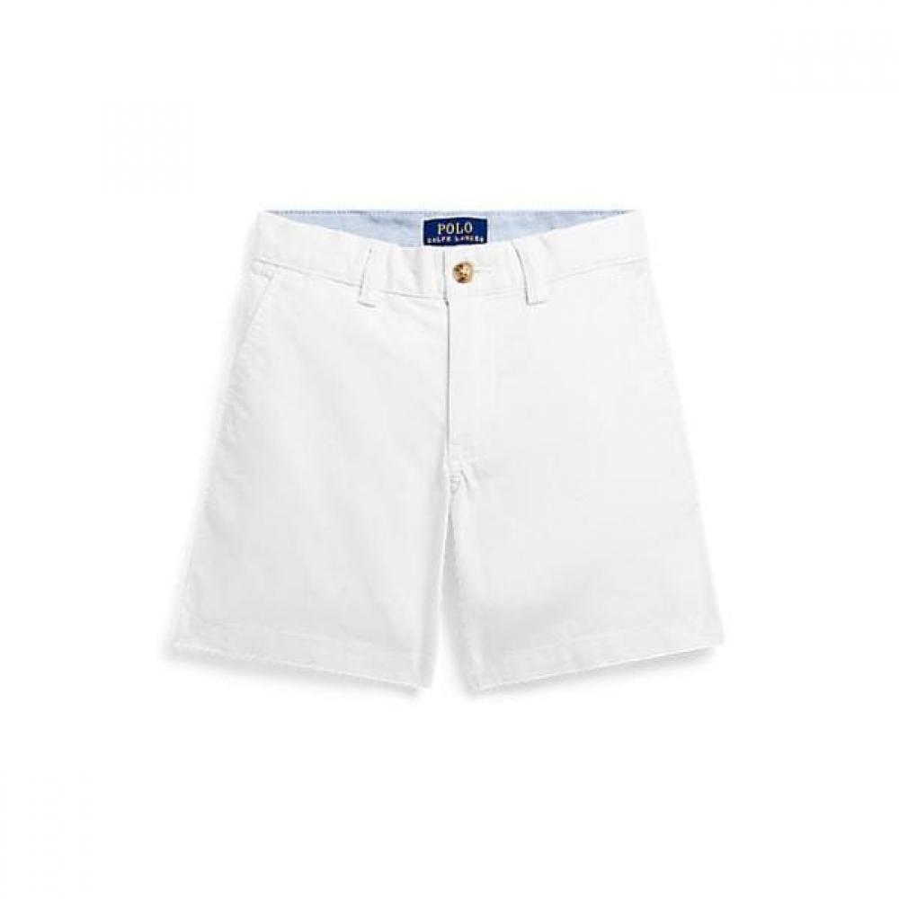 The Polo Kids Boys' 2-7 Years Straight Fit Flex Abrasion Twill Shorts (CWPOSHOB4G20082100) are cotton shorts featuring exceptional durability and stretch. Designed with PUREPRESS technology to prevent wrinkles, they come in a stylish Deck Wash White color. The straight fit design encompasses a variety of features including a signature pony embroidery on the right back pocket, belt loops, a button closure, and a zipper fly. The internal adjustable button allows for fit adjustment, and there are two diagonal front pockets, a right coin pocket, and two back button pockets.