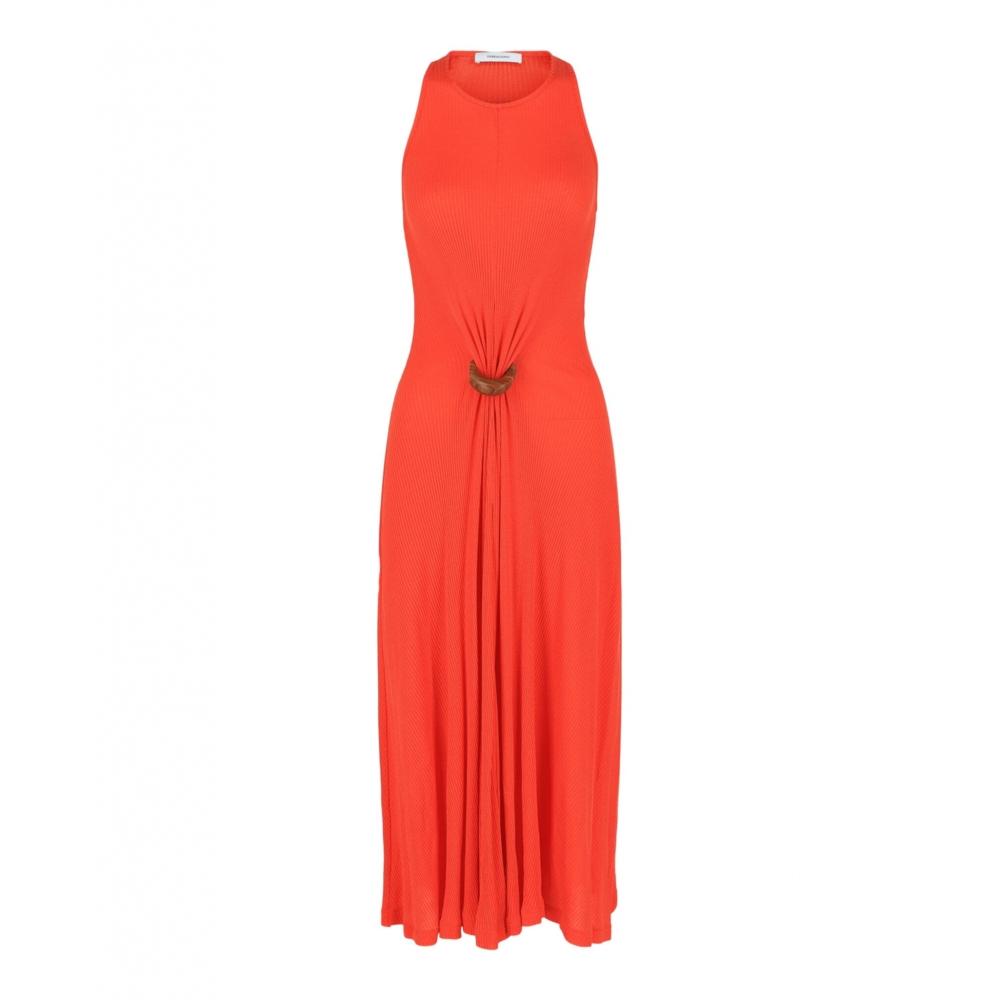 Salvatore Ferragamo Sleeveless Ribbed Maxi Dress Orange