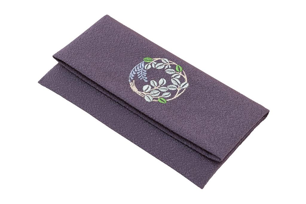 SOUBIEN Prayer Bead Prayer Bead Bag for Embroidered Chirimen Musubi Flower Buddhist Altar Japanese Purple Case, Women, Silk, (Bush Clover) Design,