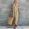 Este vestido de mujer está confeccionado en lino de algodón y presenta un corte holgado informal para una máxima comodidad.. La tela suave y liviana garantiza una sensación acogedora que no querrás quitarte.. Con un diseño de escote en V y sin mangas en un color sólido simple, este vestido irradia un ambiente elegante y encantador, haciéndote destacar sin esfuerzo..