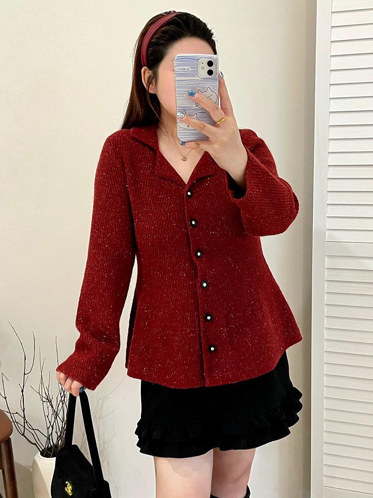 Plus Size Elegant Suit Collar Xiang Style Jacket Winter Knit Cardigan for Women