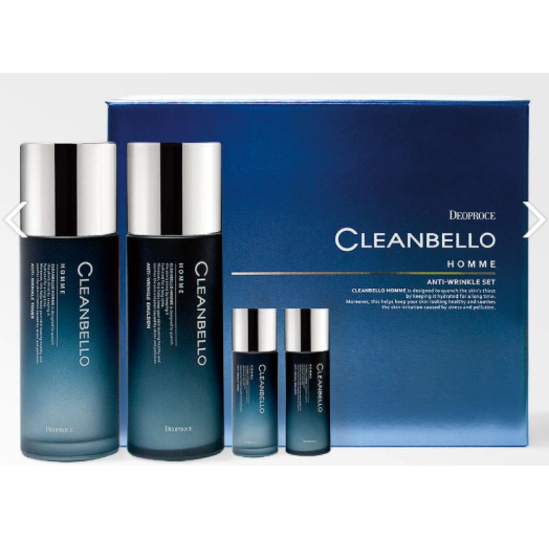 DEOPROCE Cleanbello Homme Anti-Wrinkle 2-Piece Skincare Set (Toner 150ml + Emulsion 150ml) – Men’s Anti-Aging Moisturizing Care