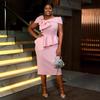 Women's Plus Size Pink Bow Off-Shoulder Elegant Evening Bodycon Dress