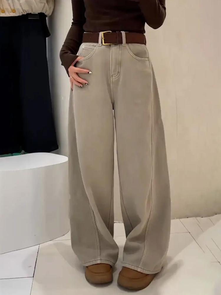 Women's Khaki Wide-Leg Jeans - 2026 Autumn Fashion Versatile Casual Style