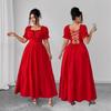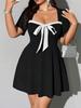 This elegant plus-size dress is designed for summer, featuring a backless, sexy V-neck and short sleeves. Crafted from high-quality polyester, it provides a comfortable and flattering fit. The solid pattern is beautifully complemented by stylish patchwork and quilted decorations, adding a touch of sophistication. The dress also boasts a unique stand neckline, making it a standout piece for any warm-weather event.