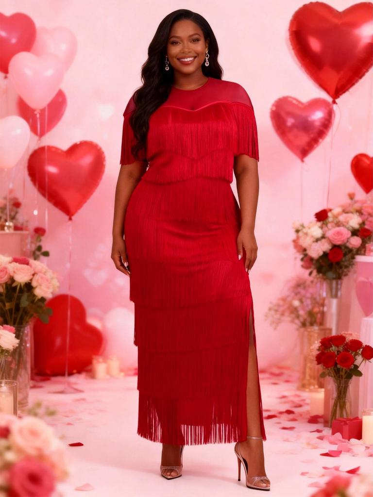 Eleva tu guardarropa de noche con este impresionante vestido de fiesta y banquete para tallas grandes. Confeccionado en poliéster de alta calidad, este elegante vestido presenta un estampado liso complementado por un escote redondo para un look clásico.. Sus elementos de diseño destacados incluyen una falda transparente con flecos, que añade un toque de seducción y sofisticación.. Una elegante abertura lateral realza la caída de la falda, asegurando que hagas una entrada memorable en cualquier evento.. Perfecto para reuniones formales, este vestido combina estilo y comodidad.