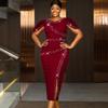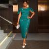 Este impresionante vestido combina elegancia y sofisticación, lo que lo hace perfecto para cualquier ocasión especial.. Confeccionado con poliéster de alta calidad, presenta un patrón liso que proporciona un aspecto clásico y atemporal.. El vestido está adornado con exquisitos detalles de pedrería, añadiendo un toque de glamour y brillo.. Diseñado con un escote redondo, el vestido ofrece una silueta elegante, mientras que el diseño fruncido acentúa la figura maravillosamente. El vestido cuenta con una elegante abertura, que realza tanto la comodidad como el estilo, y es sin mangas, lo que permite una gran libertad de movimiento y un aspecto refinado.. Este vestido combina sin esfuerzo la comodidad con el estilo lujoso para un look de fiesta inolvidable.