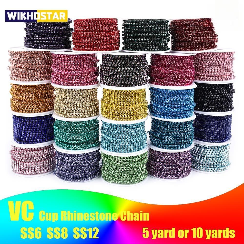 Crystal 10 Yard Rhinestones Trim Stone Cup Chain Gold Diamond Strass Decorative Applique Crystal Trimmings For Dresses