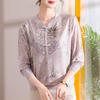 Elegant Long Sleeve Chinese Style T-Shirt for Middle-Aged and Elderly Women - Spring Patterned Elastic Top