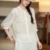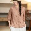 Camisa Bordada de Algodón y Lino Retro para Mujer Verano Nuevo Estilo Estilo Madre Camisa Fina de Lino Top de Manga Tres Cuartos