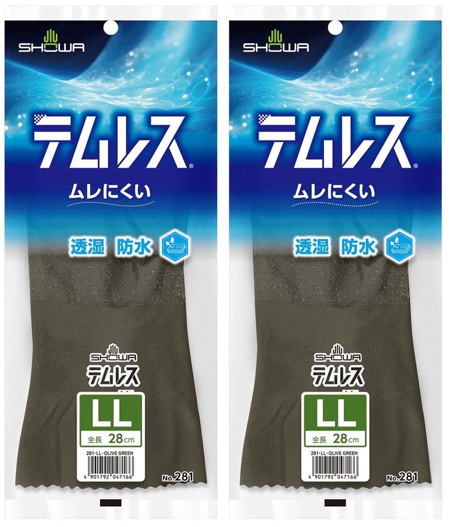 Showa Gloves Temres Breathable Waterproof Work LL Olive 1 Pair x 2 and 281 Gloves, Size, Green, Pack, Lightweight, Soft, Moisture-Resistant, No.