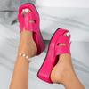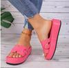 Large size foreign trade platform slippers women's new round head outer wear fashionable multi-color wedge heel one-character cross-border drag