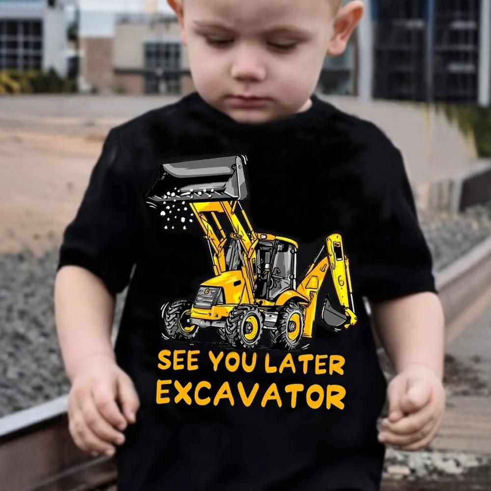 Children's T-shirt with excavator print, fashionable cartoon short-sleeved T-shirt, stylish, comfortable and casual