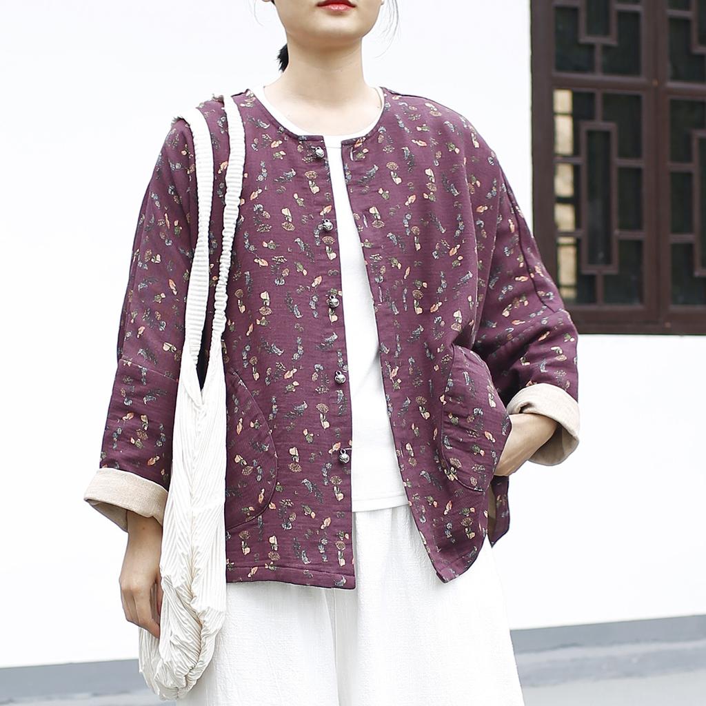 Johnature Women Vintage Print Floral Jackets O-Neck Long Sleeve Coats Spring Button Bat Sleeve Chinese Style Jackets