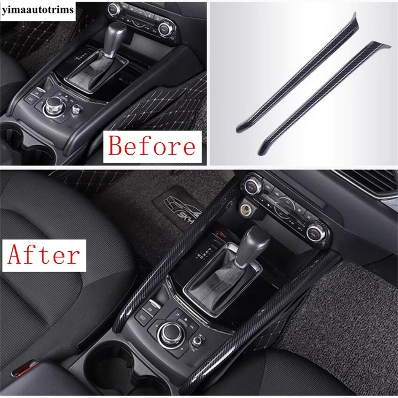 Car Central Control Gear Shift Box Panel Strip Decoration Cover Trim For Mazda CX-5 CX5 2017 - 2024 ABS Carbon Fiber Accessories