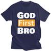Custom Fashion God First Bro T Shirts Men Short Sleeve Humor Joke Sarcastic Quote Tshirt Casual Tee Slim Fit Tshirt Merch