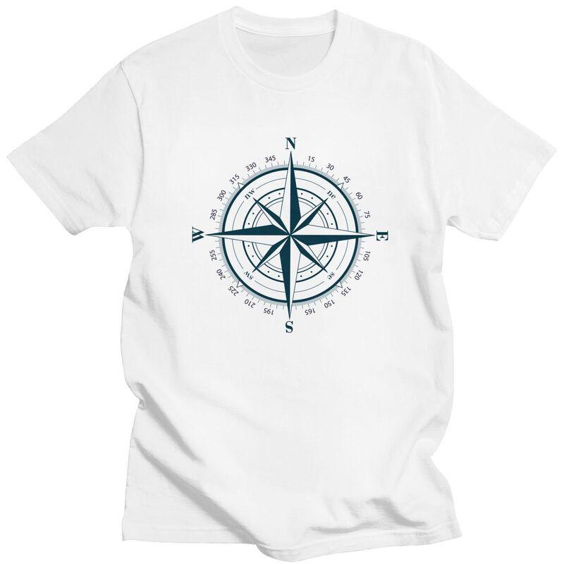 Custom Nautical Compass T Shirt for Men Pure Cotton Tshirt Leisure Tee Short Sleeve Anchor Boat Tshirts Slim Fit