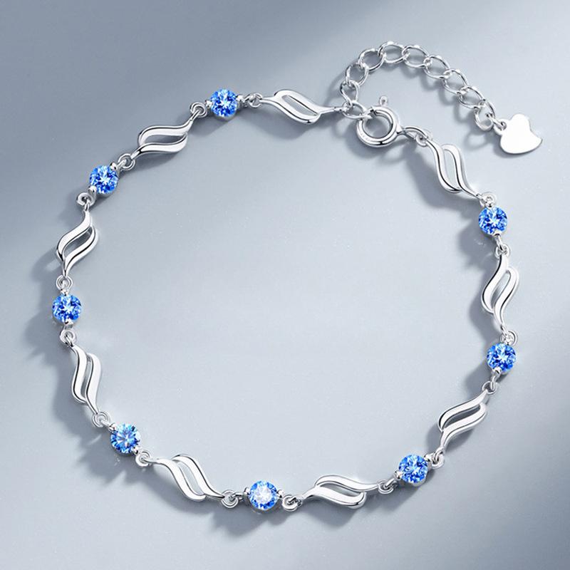 Pulseras Retro de Plata de Ley 925 con Cristales Azules Para Mujeres Diseñador Coreano Huecas Ajustables Joyería de Lujo para Fiesta Regalo