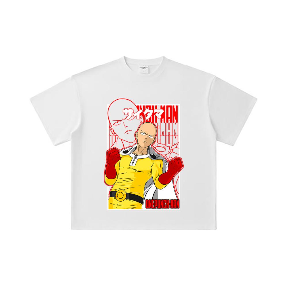 260 GSM Double Yarn 32 Count 100% Cotton One Punch Man V7 Saitama Print Unisex Heavy Cotton T Shirt