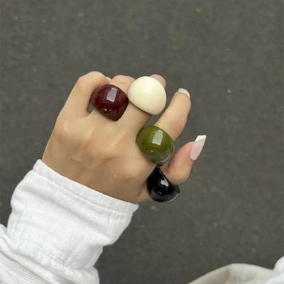 Multicolour Transparent Resin Ring Dome Irregular Ring Retro Acrylic Geometric Ring Girls