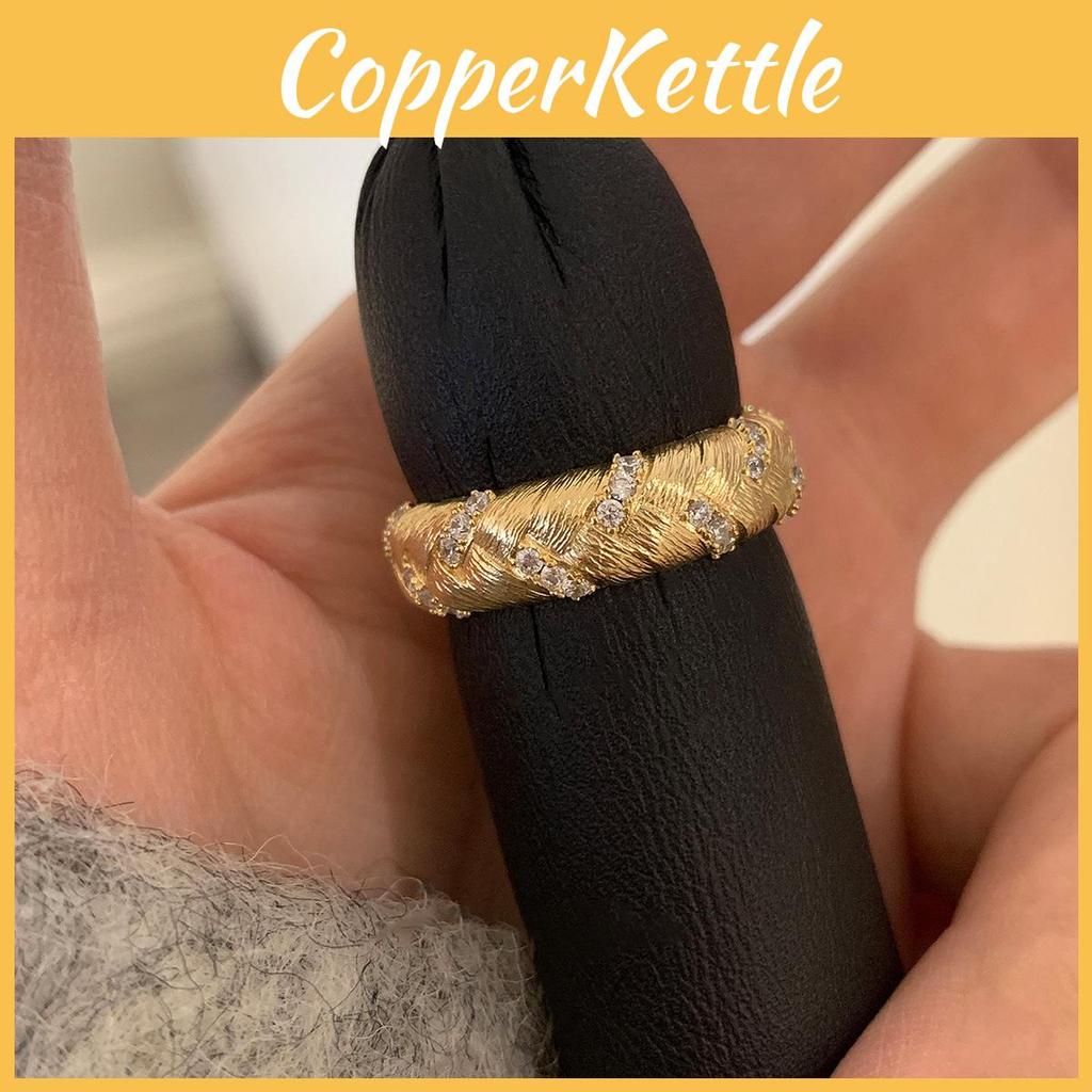 Copper Geometric Zircon Open Ring Womens Stylish Accessory For Office Wear