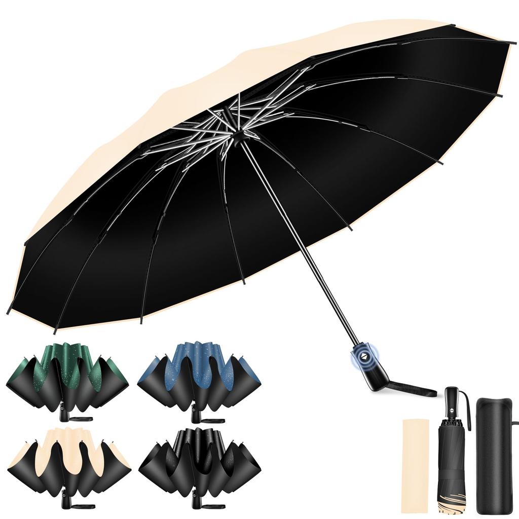 [Obra Maestra 2025 y 12 Varillas Reforzadas y Plegado Inverso] Paraguas Plegable con Apertura/Cierre Automático de un Solo Toque, Plegado Inverso, Súper Repelente al Agua UPF50+, Extra Grande, Duradero, Diseño Resistente al Viento, Sombrilla para Hombre, Paraguas Plegable, Adecuado para Sol y Lluvia, Protección para la Temporada de Lluvias, Protección contra Tifones, Protección UV, Bolsa de Almacenamiento Incluida, para Hombres y Mujeres