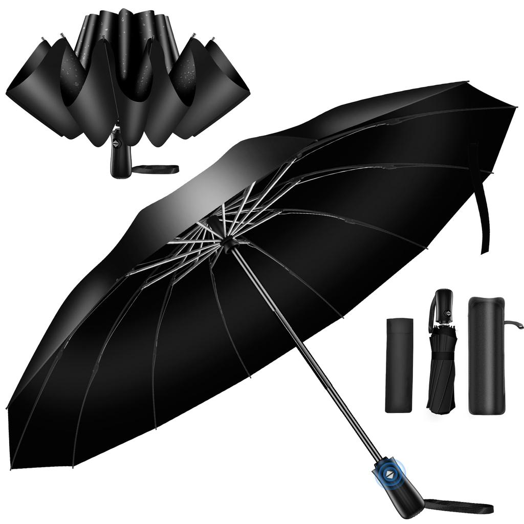 This "reinforced umbrella" features 12 ultra-strong ribs. ☂ [12-rib reinforcement & strong wind resistance] After gathering various opinions, our new all-weather umbrella is finally here! It's the ultimate men's umbrella, incorporating all the features men desire. The 12 ribs combine flexibility and strength, providing improved wind resistance and durability compared to standard 8-rib umbrellas. The anti-corrosion treated umbrella frame is ultra-strong and rust-resistant, and is resistant to bending and breaking, even in strong winds and heavy rain. The three-fold structure ensures that the umbrella will return to its original position even if it is turned inside out by strong winds. There's no need to worry about it bending or breaking easily. It's perfect for heavy rain, strong winds, and even the rainy season. (Note: While it is slightly heavier than a regular umbrella, its strength and size are prioritized for functionality. We appreciate your understanding if the weight is a concern.)