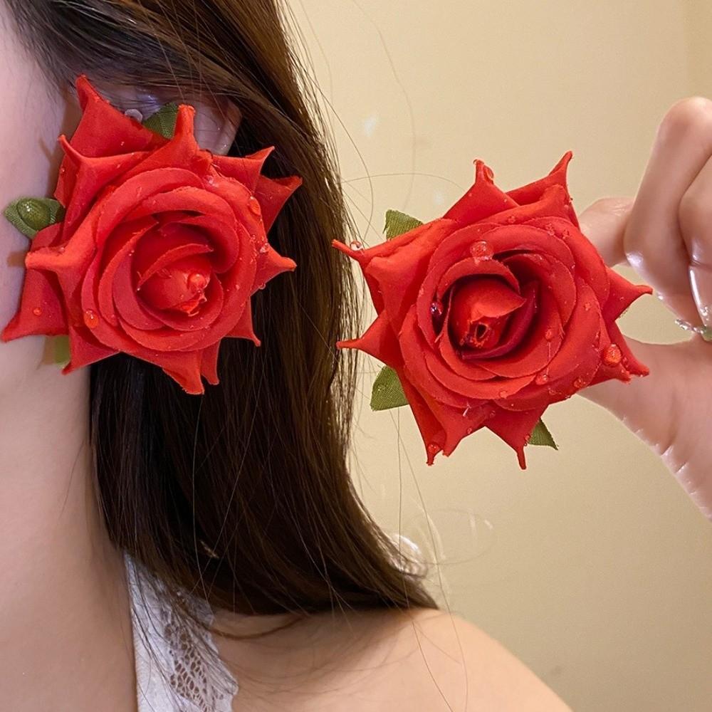 French Style Floral Stud Earrings Solid Color Drop Earrings Fresh Rose Flower Earrings Women