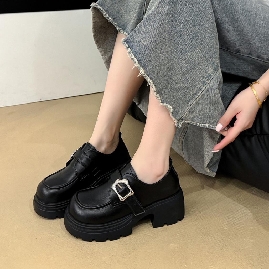 Thick sole height increase 6CM small man black small leather shoes women's British style 2025 new autumn loafers women's single shoes