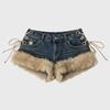 ZYLLO Nuevos Vaqueros Cortos de Diseño Retro para Mujer, Empalmados Esponjosos, Estilo Y2k, Tiro Bajo, con Tira, Ajustados, Hot Pants