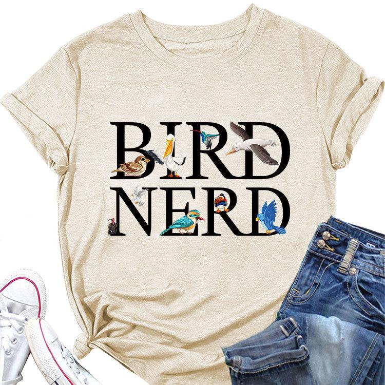 New summer fashion shortsleeved Tshirt Bird Nerd Tee printed casual Womens crewneck top with pullover