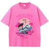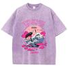 Vintage Womens Acid Wash T-Shirts Tokyo Harajuku Printing Tees Crewneck Cotton Oversized Short Sleeve Fashion Clothes